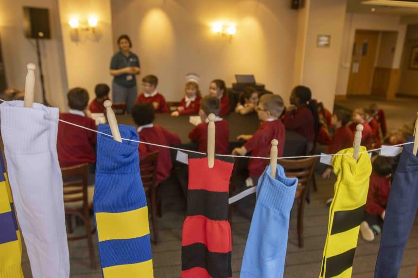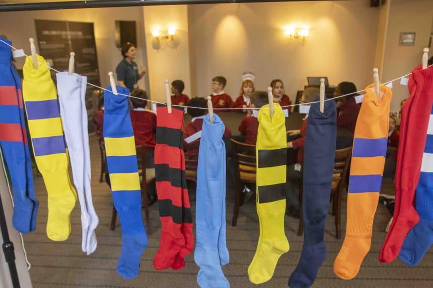 Cymerodd y disgyblion ran mewn gweithdy diddorol lle roedden nhw’n cael gafael gwrthrychau go iawn, gwisgo gwisgoedd replica, a defnyddio sanau pêl-droed i archwilio sut roedd chwaraewyr yn arfer cael eu hadnabod ar y cae. Fe wnaethon nhw hefyd ddysgu pwy wnaeth fynychu cyfarfod cyntaf Cymdeithas Bêl-droed Cymru a chawson nhw eu hannog i archwilio pwy oedd ar goll a pham, a arweiniodd at drafodaethau ynghylch gêm y merched a hanesion y mwyafrif byd-eang.
