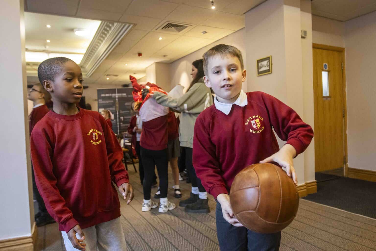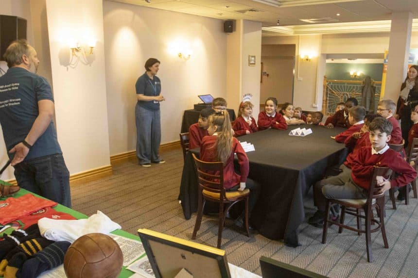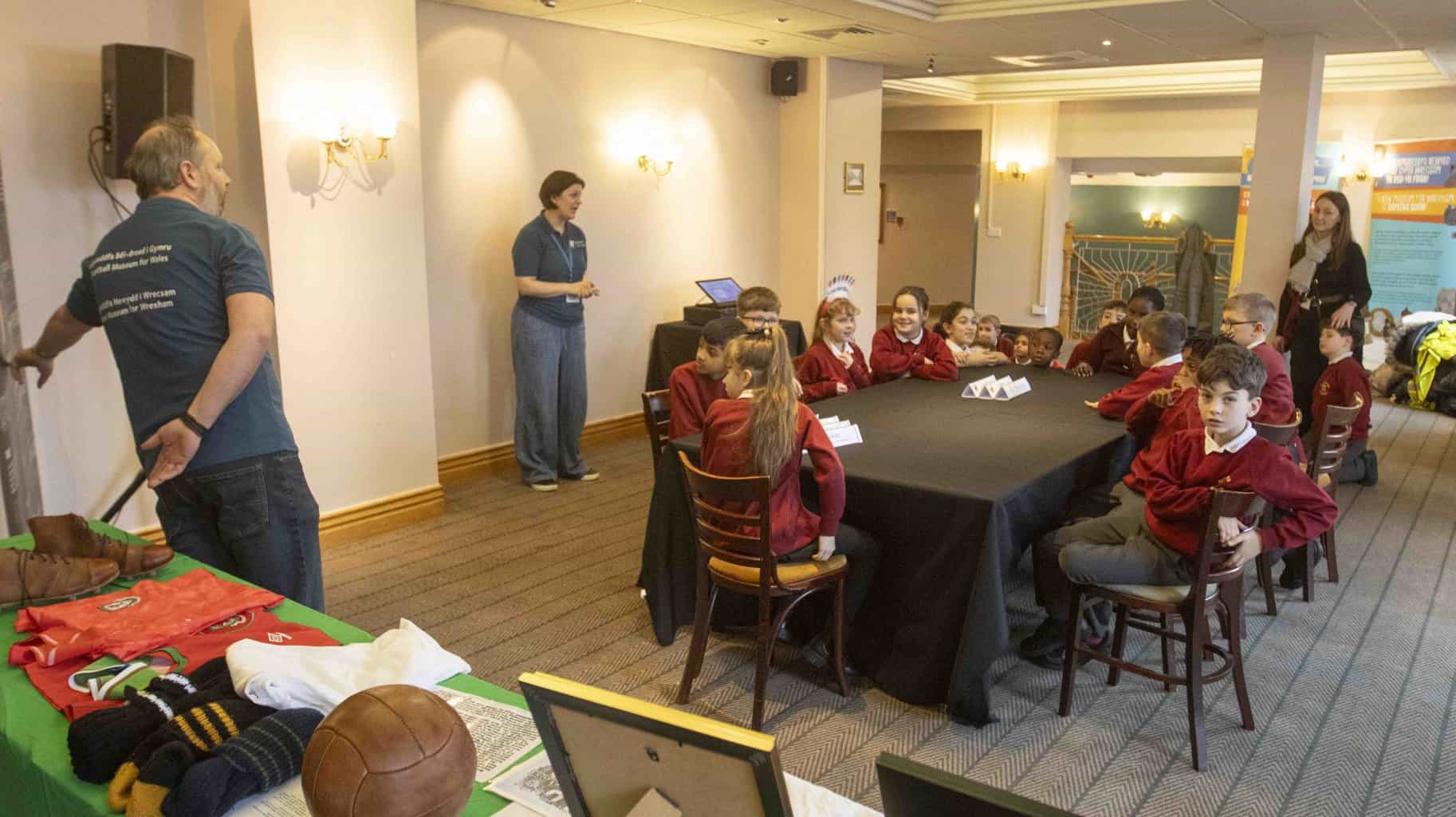 “Cafodd disgyblion o ysgolion cynradd Wrecsam eu gwahodd i’r Wynnstay Arms i ddarganfod gwreiddiau pêl-droed Cymru ar ei ben-blwydd yn 150 oed. Mae’r digwyddiad hwn yn helpu i lywio’r rhaglen ddysgu ar gyfer yr amgueddfa wrth i ni baratoi ar gyfer ailagor.”