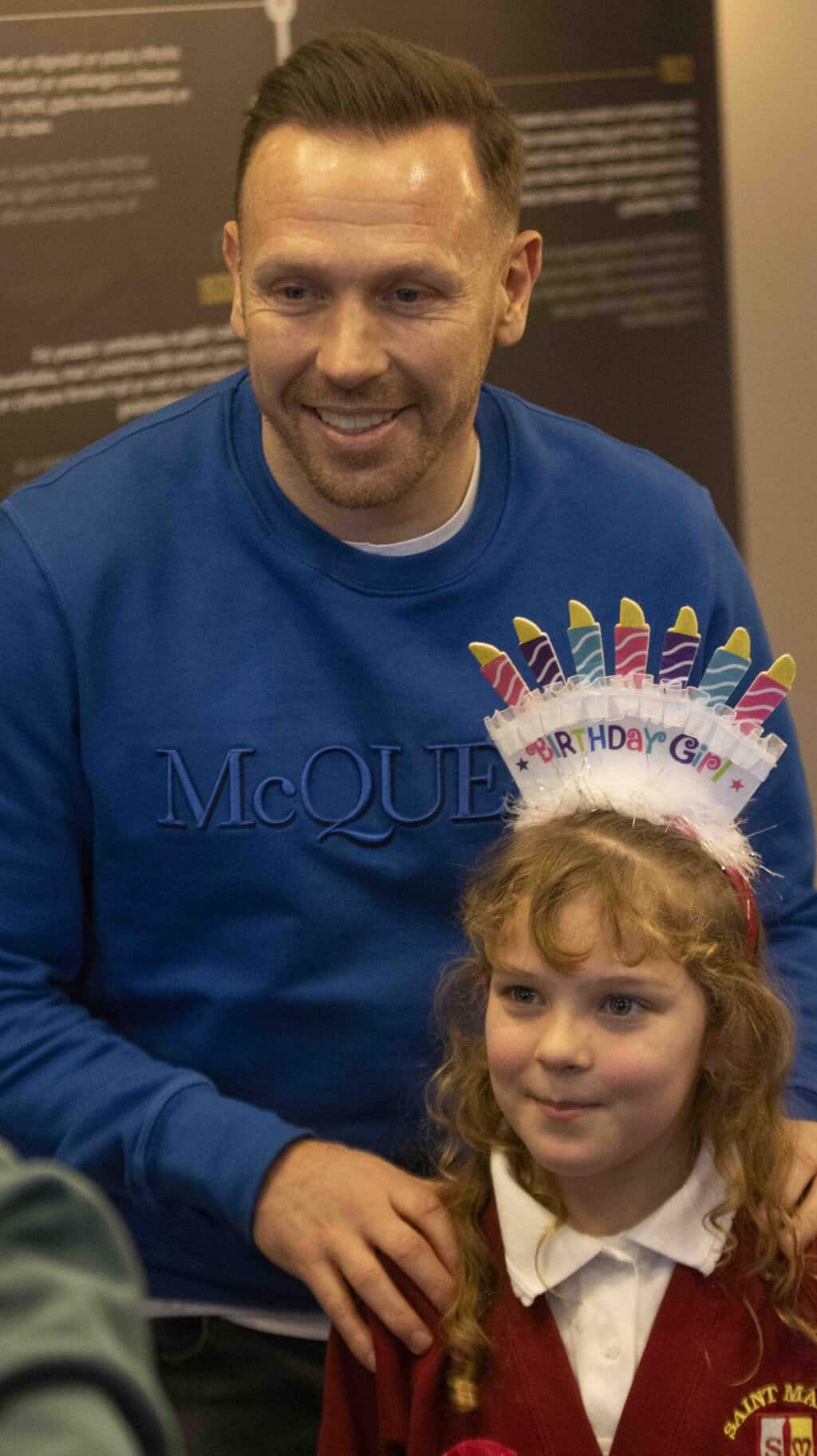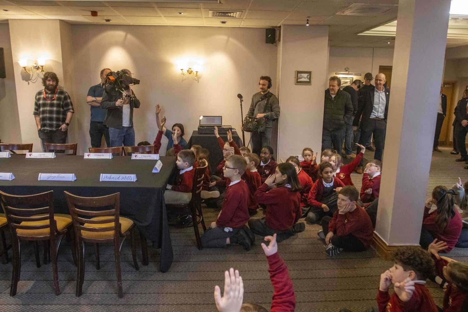 Roedd y disgyblion yn llawn cyffro i gyfarfod Craig Bellamy a Chris Gunter ar ddiwedd eu sesiwn, wrth i aelodau o Gymdeithas Bêl-droed Cymru gyrraedd ar gyfer eu cyfarfod cyngor coffa yn y Wynnstay.