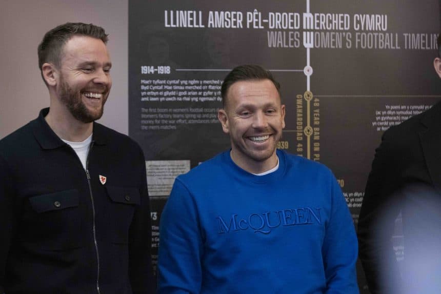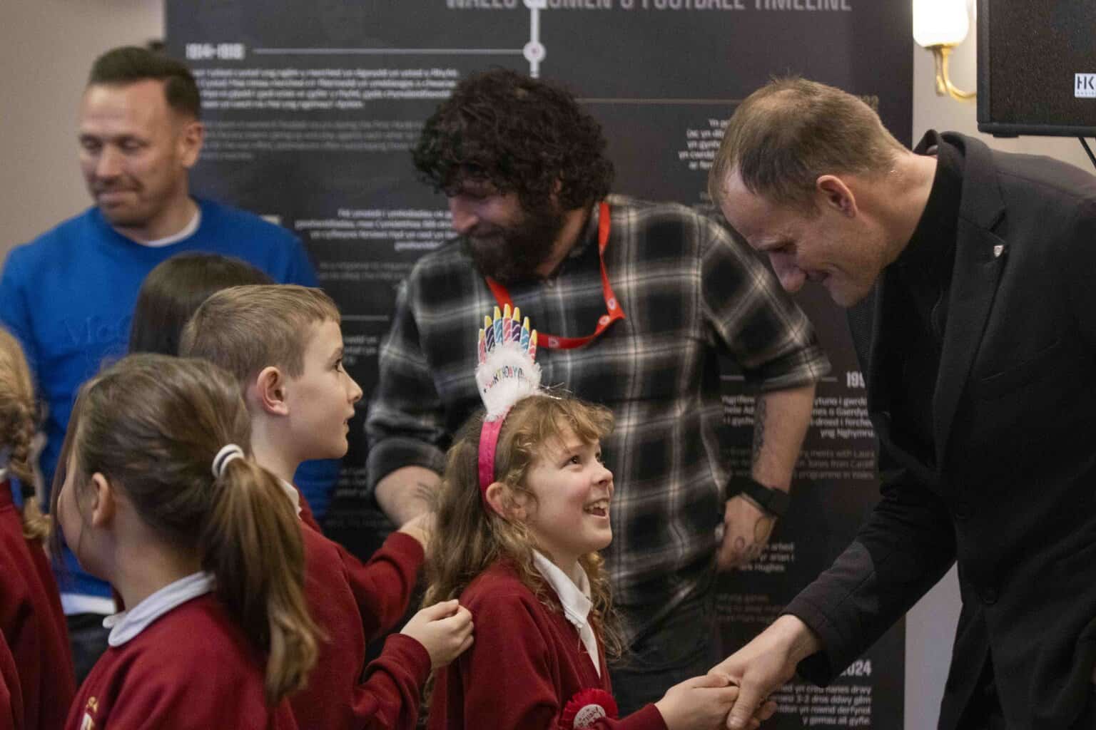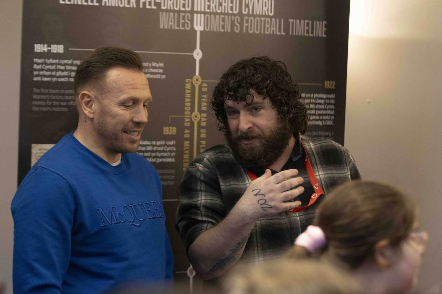 “Am gyfle gwych i dynnu lluniau a chyfle arbennig i blant gyfarfod eu harwyr pêl-droed ar ddiwrnod mor bwysig yn hanes pêl-droed Cymru. Rydyn ni wedi mwynhau amserlen lawn ac ysbrydoledig yn Wrecsam, gan ddechrau gyda thîm yr amgueddfa, a arddangosodd wrthrychau rhyfeddol o’r casgliad i aelodau ein cyngor yn y lleoliad hanesyddol hwn – rhan annatod o stori bêl-droed Cymru.